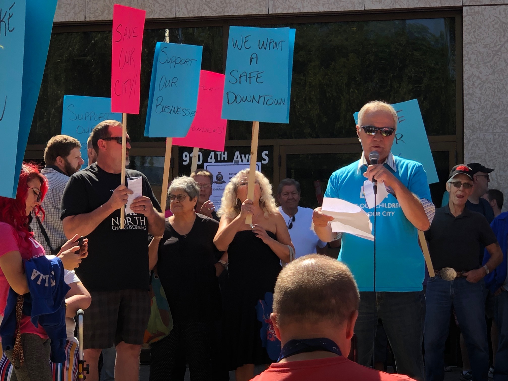 The larger rally, organized by the newly formed Lethbridge Citizen’s Alliance, saw local business owners, those impacted directly by crime, former addicts and many others carrying signs reading “stop enabling addiction start enabling recovery,” “stop supporting the drug trade,” and “shut down the drug house.”