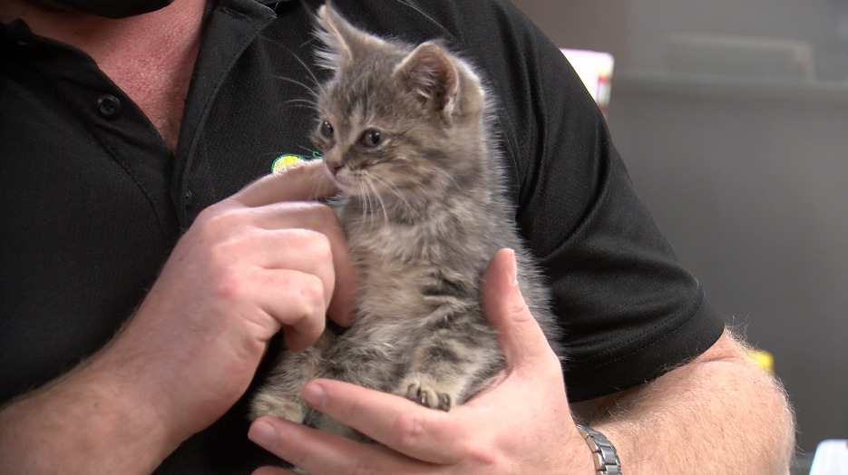 Sanatec owner Chris Laing says shortly after pulling up to a job just outside the town they spotted a kitten running up the tire tracks they’d left.