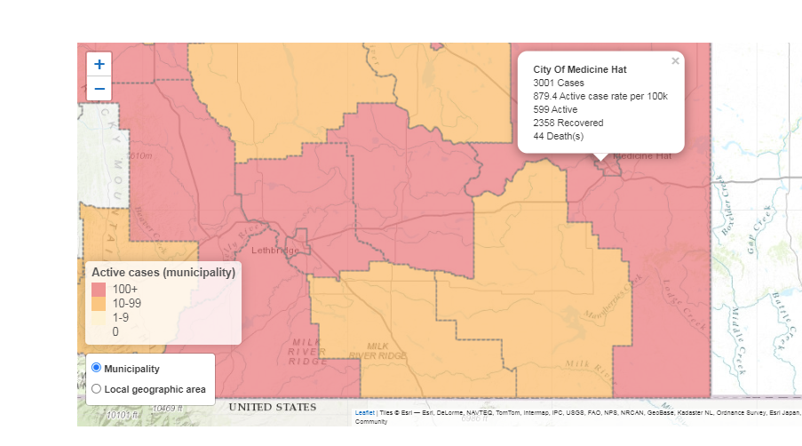 There are 599 active cases of COVID-19 in Medicine Hat on Monday.
