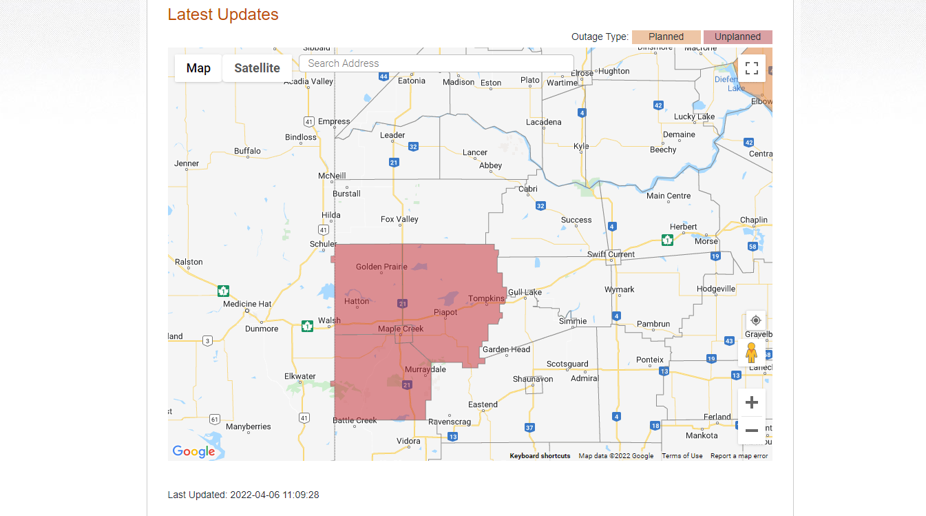 UPDATE 1:30 p.m. from SaskPower: Crews continue to work to restore power to customers in the town of Maple Creek, ETR for these customers is appox 6:00pm. While crews continue to work to restore power to customers in the surrounding towns and rurals at this time, the potential exists for these customers to without power overnight into Thurs. Updates will be provided as they become available.