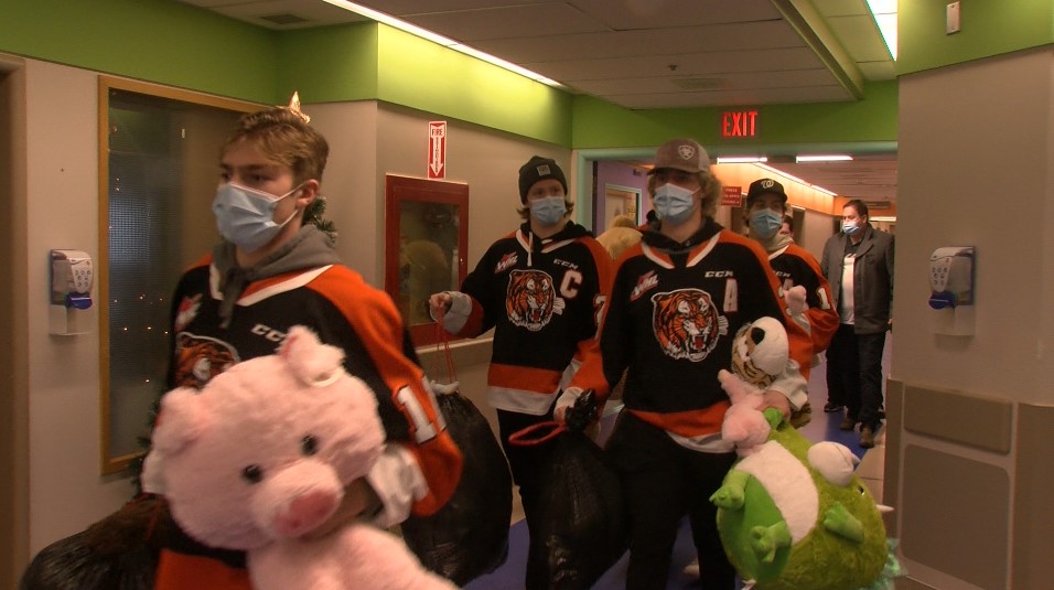 MEDICINE HAT, AB – The Medicine Hat Tigers weren’t on the winning side of their game Saturday, but the real victory came off the ice on Monday when they visited the pediatrics ward at the Medicine Hat Regional Hospital.