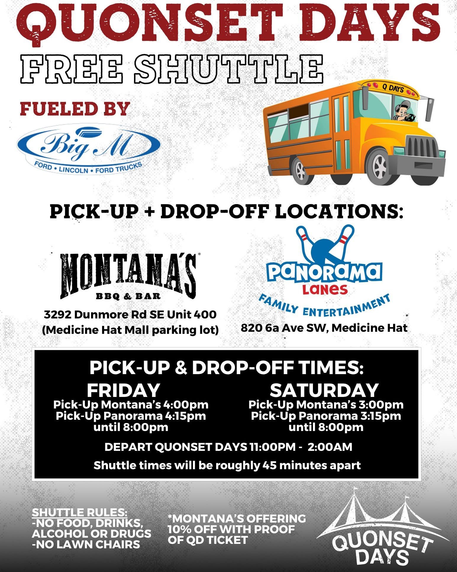 During the two nights of music, food and beverages will be available on site, and a free shuttle service available from Medicine Hat.