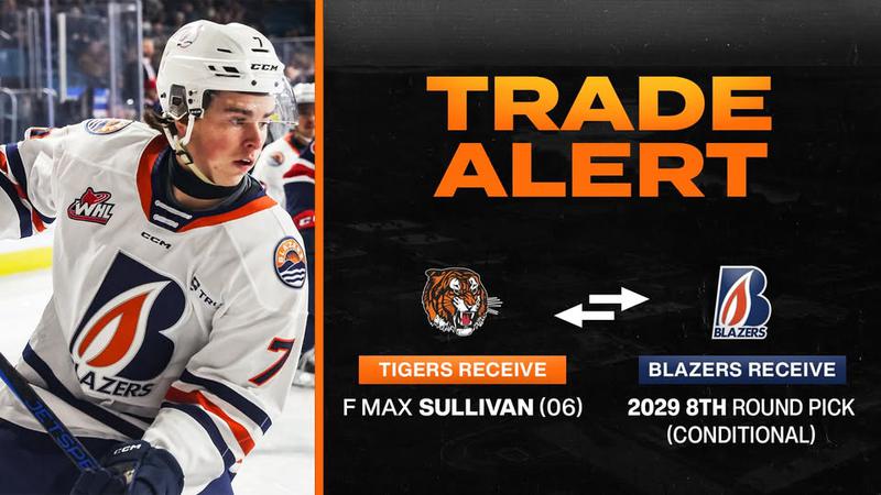 The Medicine Hat Tigers having brought forward Max Sullivan in through a trade with the Kamloops Blazers.