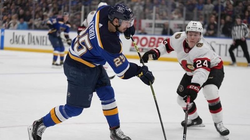 ST. LOUIS (AP) - Jake Neighbours and Noel Acciari scored first-period goals and Jordan Binnington made 31 saves to lead the St. Louis Blues over the Ottawa Senators 2-1 on Monday night. St. Louis brok...