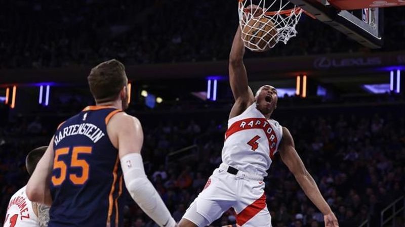 Raptors recover after Barrett tying slam, edge Knicks in OT