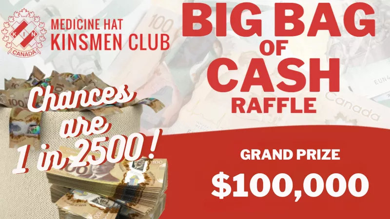 The Medicine Hat Kinsmen Club is hosting a Big Bag of Cash fundraiser featuring a $100,000 grand prize and a 50/50 bonus draw in support of community initiatives in the Medicine Hat area.Tickets are o...