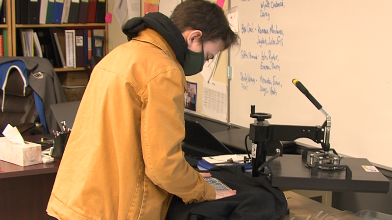 DUNMORE, AB - Pressed, peeled and set, this shirt now has a new face to it that will soon be packaged and sold online.But we aren't in a manufacturing facility.Instead we are in a classroom at Eagle B...