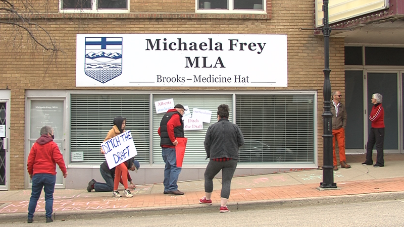 MEDICINE HAT, AB-- Protesters stood outside MLA Michaela Frey's office Saturday afternoon to voice their concerns about Alberta's draft curriculum.Back in March, the province announced the Alberta dra...