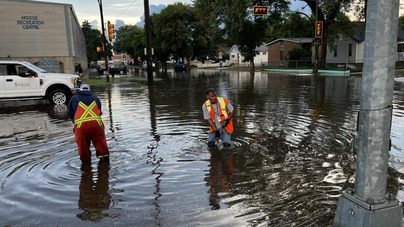 MEDICINE HAT, AB - A cloudburst from a thunderstorm led to localized flooding for parts of the southeast Hill last night.The intersection of Sixth Street SE and Division Avenue south, next to the Moos...