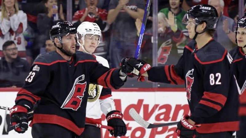 Necas scores in OT as Hurricanes edge Senators 3-2