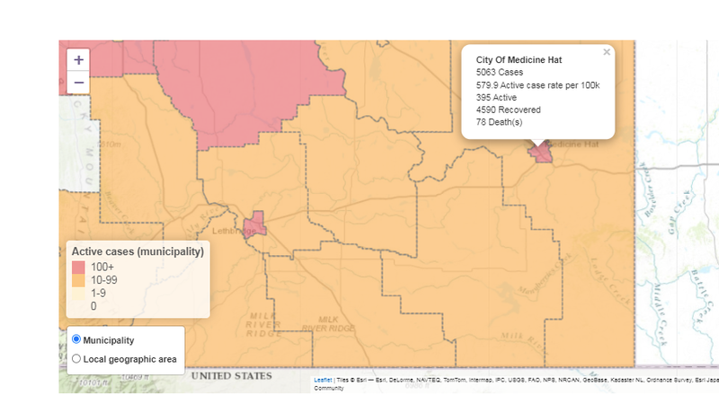 There are 395 active cases of COVID-19 in Medicine Hat on Thursday.Medicine Hat has had 5,063 total cases - the 395 active, 4,590 recovered and there have been 78 deaths.There are 52 new cases in the ...