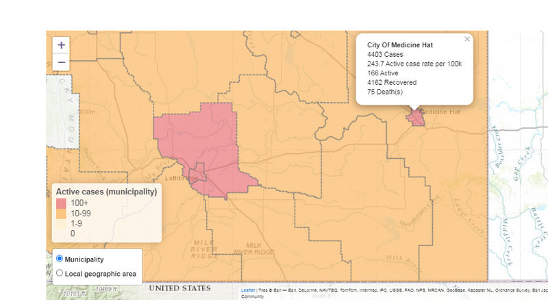 There are 166 active cases of COVID-19 in Medicine Hat on Wednesday.Medicine Hat has had 4,403 total cases - the 166 active, 4,162 recovered and there have been 75 deaths, one new today.There are five...
