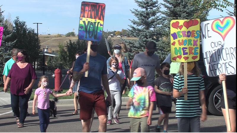 MEDICINE HAT, AB- Colourful signs lined the perimeter of the Medicine Hat Regional Hospital on Saturday as people walked to show their support for the health-care workers who are front and centre in c...