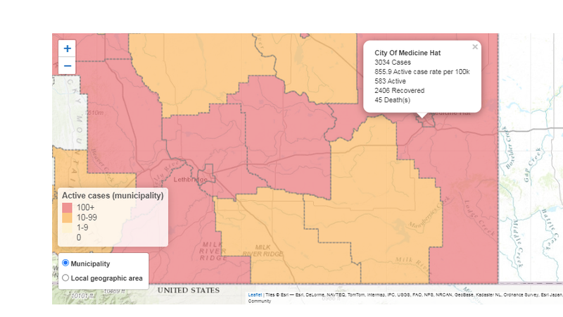 There are 583 active cases of COVID-19 in Medicine Hat on Tuesday.Medicine Hat has had 3,034 total cases - the 583 active, 2,406 recovered and there have been 45 deaths, one new today.There are 33 new...