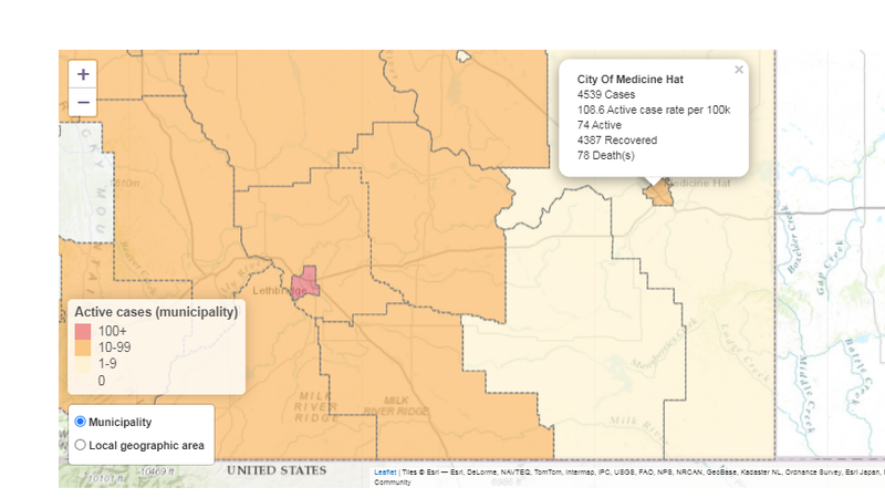 There are 74 active cases of COVID-19 in Medicine Hat on Wednesday.Medicine Hat has had 4,539 total cases - the 74 active, 4,387 recovered and there have been 78 deaths.There are four new cases in the...