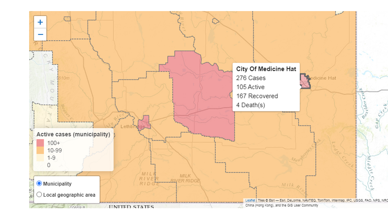 Active COVID-19 cases in Medicine Hat down by four to 105